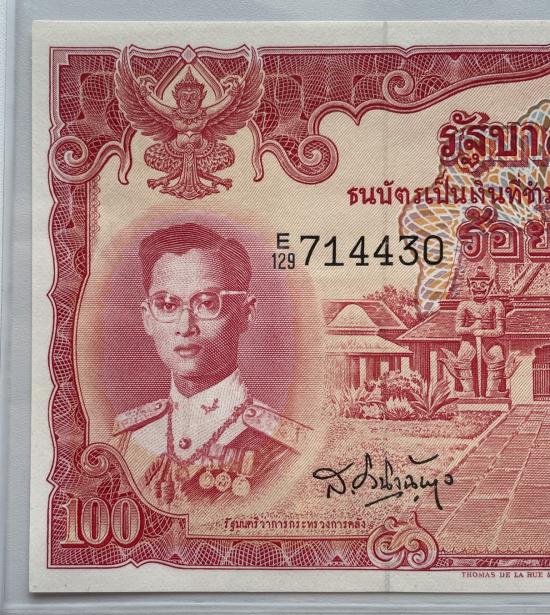 ธนบัตร 100 บาท รัชกาลที่ 9 แบบที่ 9 พิมพ์โทมัส จำนวน 1 ใบ สภาพสวยตามรูป |