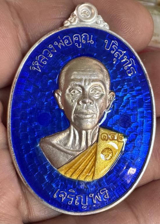 เหรียญจัมโบ้ หลวงพ่อคูณ ปริสุทฺโธ รุ่นเจริญพรล่าง91 เนื้อเงินลงยาสีน้ำเงิน หมายเลข142 (เหรียญเงินหน้าทองคำหนัก37.2กรัม มีกลองครับ