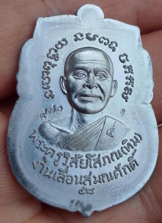 เหรียญเลื่อนสมณศักดิ์หลวงปู่ทวดปี 58 เนื้อตะกั่วไม่ตัดปีก (ชุดเนื้อเงินหน้ากากทองคำ) ตอก Number 970 พร้อมกล่องเดิมสภาพสวย