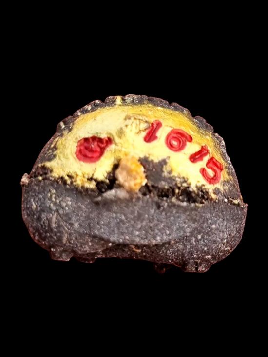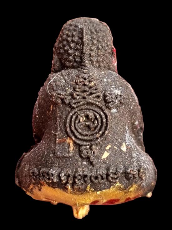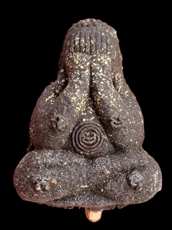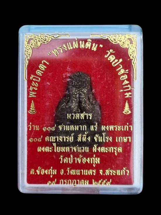 พระปิดตาทรงแผ่นดิน วัดป่าช่องกุ่มปี59 เนื้อผงว่านผสมมวลสารเก่า หลวงปู่หมุน ฝังตะกรุดตอกโค๊ต ตอกหมายเลข1615(องค์นี้มีเกศา) |