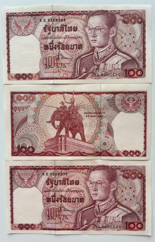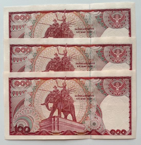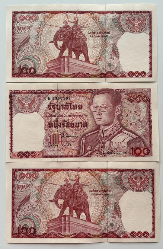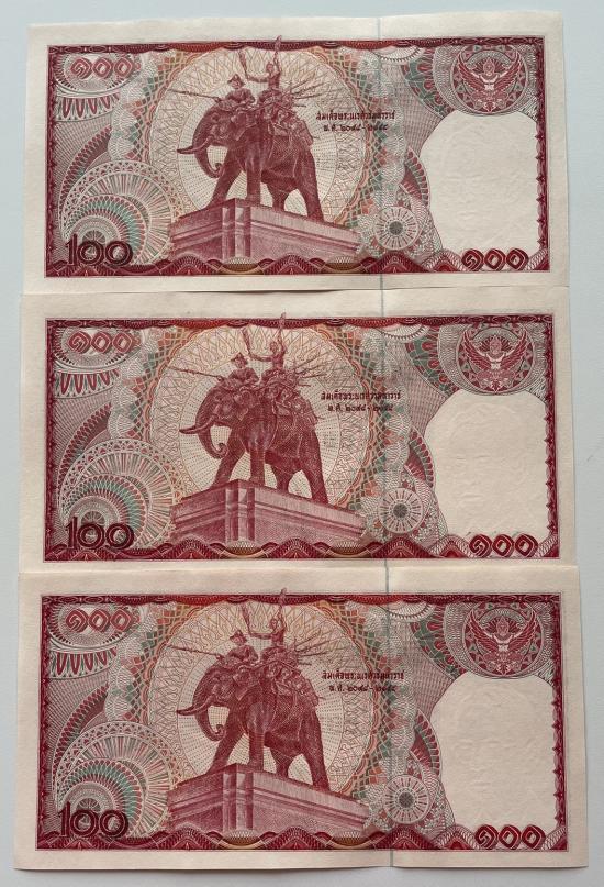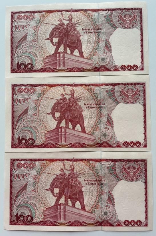 ธนบัตร 100 บาท รัชกาลที่ 9 แบบ 12 ช้างแดง จำนวน 3 ใบ สวยใหม่กริ๊บ |
