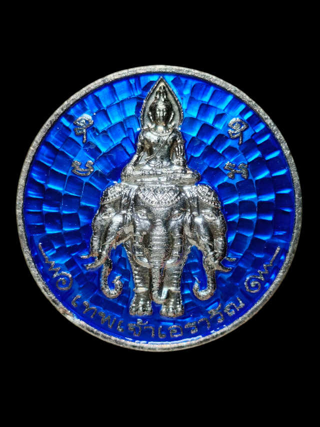 เหรียญเทพเจ้าเอราวัณ โรงเรียนศูนย์สงครามพิเศษ จ.ลพบุรี เนื้อเงินลงยา