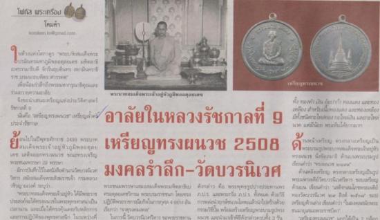 เหรียญทรงคุณค่าประวัติศาสตร์ชาติไทย ของเราอีกเหรียญหนึ่ง นั่นคือ เหรียญพระบรมรูปทรงผนวช พระบาทสมเด็จพระปรมินทรมหาภูมิพลอดุลยเดช พระบางสมเด็จพระเจ้าอยู่หัวรัชกาลปัจจุบัน ล้นเกล้าปวงชาวไทย หลายๆท่านคงรู้จักเหรียญนี้ และ อาจเคยเห็นเหรียญนี้มา แต่หลายๆท่านไม่ทราบประวัติ และ คุณค่า รวมทั้งความหมายในเหรียญนี้อย่างชัดแจ้ง เหรียญนี้มีประวัติพอสังเขปมาให้ดังนี้ การทรงผนวชครั้งนั้น เป็นพระราชดำริอันเกิดแต่พระราชศรัทธาโดยแท้ กล่าวคือ ในวันที่22 กันยายน ปีพศ 2499 พระบาทสมเด็จพระเจ้าอยู่หัวโปรดเกล้าๆ ให้จอมพล ป พิบูลสงคราม นายกรัฐมนตรีเข้าเฝ้าและทรงแจ้งพระราชประสงค์ให้รัฐบาลทราบว่า พระองค์จะทรงผนวชในพระศาสนา ณ วัดพระศรีรัตนศาสดาราม กำหนดวันที่ 22 ตุลาคม พศ2499 แล้วประทับ ณ วัดบวรนิเวศวิหารเป็น เวลา 15 วัน ในวันที่ 18 ตุลาคม พศ 2499 พระองค์ได้เสด็จออกพระที่นั่งอมรินทรวินิจฉัย ทรงแจ้งพระราชดำริที่จะทรงผนวช ท่ามกลางมหาสันนิบาต ประกอบด้วย พระบรมวงศานุวงศ์ คณะองค์มนตรี คณะทูต ประธานสภาผู้แทนราษฏร และ ข้าราชการซึ่งเข้าเฝ้าทูลละอองธุลีพระบาทอยู่ หลังจากนั้น พระองค์ได้เสด็จไปยัง สีหบัญชร พระที่นั่งพุทไธสวรรย์ปราสาท ซึ่งสถานที่แห่งนั้น มีประชาชนเข้าเฝ้าอย่างล้นหลาม พระองค์ทรงมีพระราชดำรัสดังนี้ ข้าพเจ้ามีความยินดีที่ท่านทั้งปวงได้มาประชุมกัน ณ ที่นี้ ขอถือโอกาสแจ้งดำริที่จะบรรพชาอุปสมบทให้อาณาประชาราษฎรทราบทั่วกัน พระราชจริยาวัตรระหว่างทรงผนวชนั้น มีกล่าวในหนังสือจดหมายเหตุการณ์เสด็จออกทรงผนวชๆ ซึ่งทางวัดบวรนิเวศได้จัดพิมพ์ขึ้นว่า แม้พระบาทสมเด็จพระเจ้าอยู่หัวจะทรงมีเวลาอยู่ในบรรพชิตเพศไม่นาน แต่ได้ทรงใช้เวลาทั้งหมดนั้น บำเพ็ญสมณธรรมโดยเคร่งครัด ทรงด้านพระวินัยบัญญัติก็ทรงทำอุปัชฌายวัตร อาจาริยวัตร ทรงเคารพ ในพระภิกษุผู้อาวุโสกว่า เมื่อเข้าสู่ที่ประชุมสงฆ์ ก็ประทับตามลำดับพรรษา ทรงรังเกียจในอาบัติเล็กน้อย จนถึงงดฉลองพระบาท แม้เสด็จๆ ภายในพระอาราม ทรงสำรวมพระอินทรย์ทุกพระอิริยาบท ไม่ทรงมีสิ่งหนึ่งสิ่งใดอันมีพระราชอุปชธยาจารย์จะพึงห่วงในทางศีลและอาจาระ นอกจากนี้ยังเป็นที่ประจักษ์ว่า พระบาทสมเด็จพระเจ้าอยู่หัว ทรงสดับพระธรรมเทศนาในวันพระธรรมสวนะ ทรงศึกษาพระธรรมวินัย ร่วมกับภิกษุสามเณรในพระอาราม และ ตามที่พระราชอุปธยาจารย์จัดถวาย มิได้ขาดบกพร่องจนกระทั่งวันสุดทายที่จะทรงลาผนวช วัตถุประสงค์การสร้าง เหรียญทรงผนวชนี้ สร้างในพระราชพิธีบำเพ็ญพระราชกุศล พระชนมายุเสมอสมเด็
