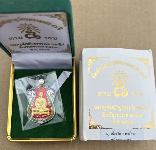 ***เคาะเดียวแดง***เหรียญเสมา8รอบ เนื้อเงินลงยาร้อนหน้ากากทองคำ