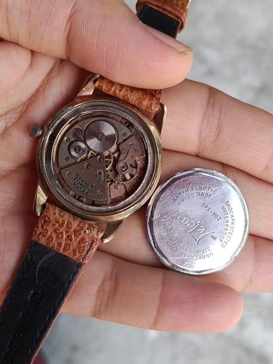 สวยๆตามรูป สภาพสวยตามกาลเวลา ตัวจริงสวยกว่ารูป แท้วินเทจยุค1950-1970 เรือนทองหลักว่าว เลขอารบิค เข็มดาบทอง38มิล เฟลก้าแบรนด์สวิส แบรนด์เดียวกับทิโทนี่ เครื่องแดงๆ รับประกันตามกฎ เดินปกติ