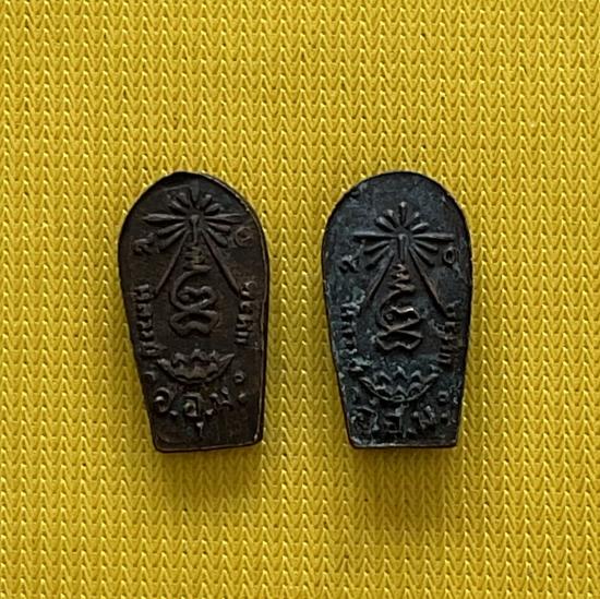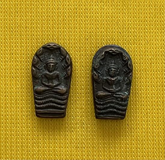 พระปรกใบมะขามหลวงปู่แหวนออกวัดสัมพันธวงค์ ปี 2520 เนื้อทองแดง 2 องค์