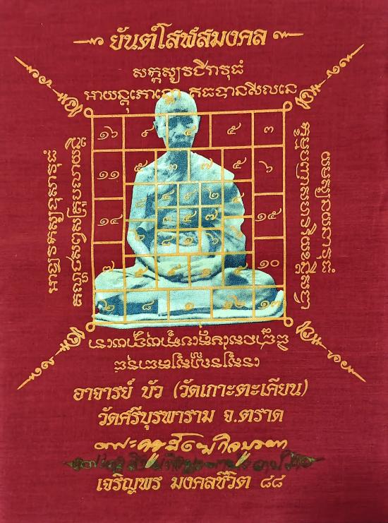 ผ้ายันต์โสฬสมงคล เจริญพร มงคลชีวิต 88 หลวงปู่บัว ถามโก ปี 2557 (5 ผืน)