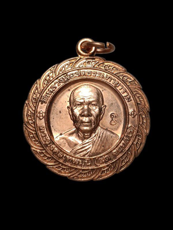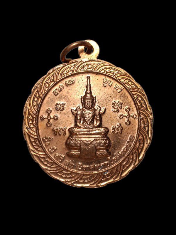 เหรียญกงจักร เหรียญหลวงพ่อสด พระมงคลเทพมุนี วัดหลวงพ่อสดธรรมกายาราม อ. ดำเนินสะดวก จังหวัดราชบุรี หลังพระแก้ว เนื้อทองแดง |