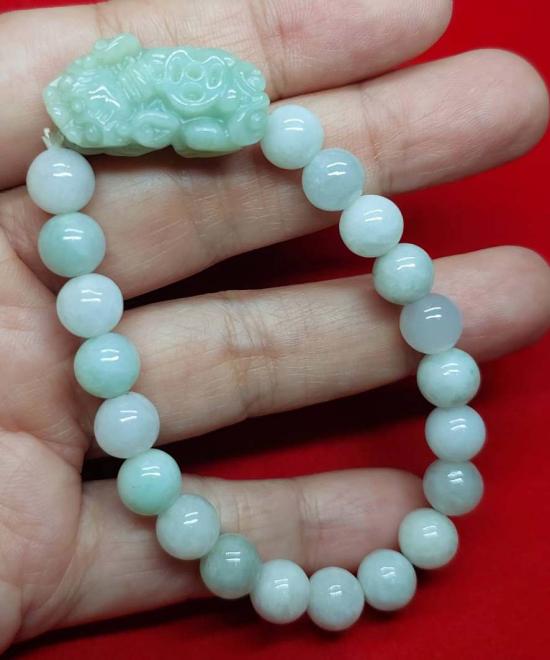 ***วัดใจ***สร้อยข้อมือปี่เซี๊ยะ หินหยกพม่า สีพาสเทล (Pastel Jade) 8 มิล