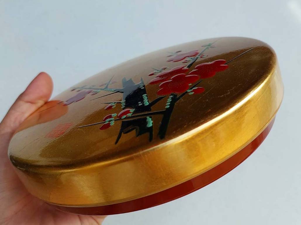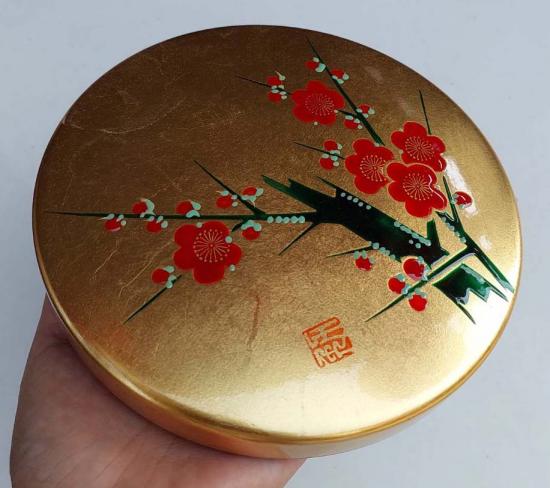 กล่องชุดเครื่องเขียนพู่กันญี่ปุ่นแบบดั้งเดิมนี้เป็นงานฝีมือ ปิดทองคำ ของสะสม ยังไม่ผ่านการใช้งานกล่องใส่ที่ทำจากไม้เคลือบแล็กเกอร์ (Urushi) สวยงาม กล่องขนาด 7 นิ้ว