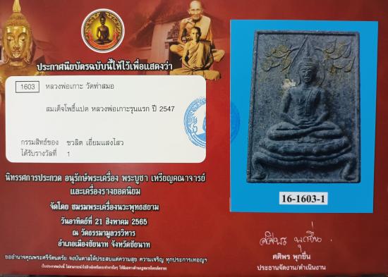 พระสมเด็จปรกโพธิ์ 8ใบ ปี2547 หลังยันต์ฝังตะกรุด โรยผงตะไบทอง หน้า-หลัง หลังปั๊มตรายางวัด พร้อม *จารมือหลวงพ่อเกาะ* สวยเดิม พร้อมใบประกาศ