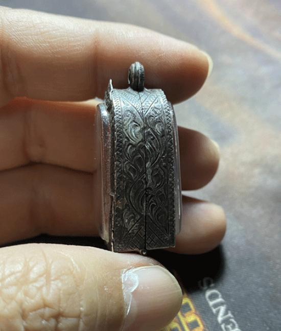 วัดใจของเหมามาขายถูกตามสภาพ กรอบตลับเงินแกะมือ ใส่พระหลวปู่ทวดพิมพ์พระรอด-วัดพระสิงห์ หรือใกล้เคียง |