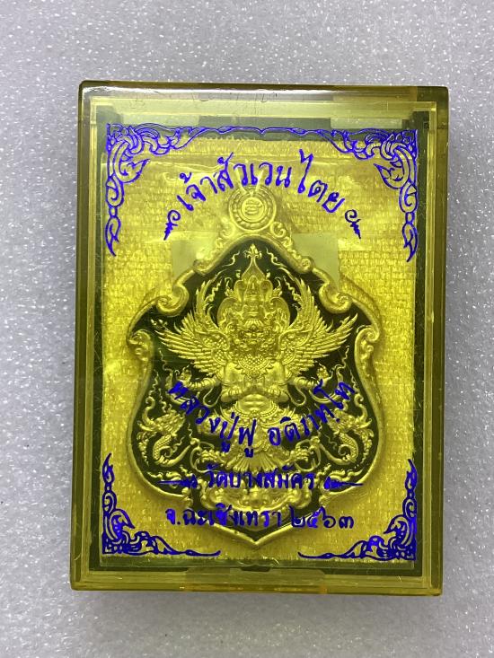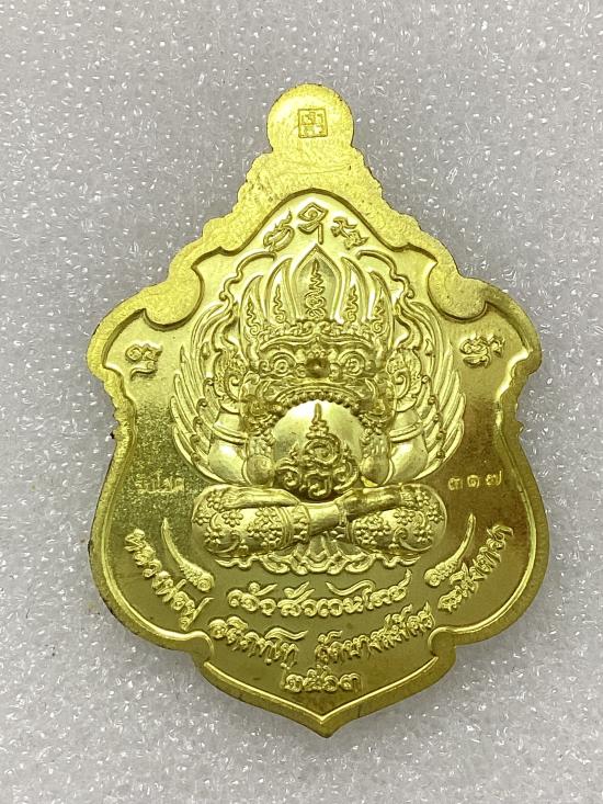 เหรียญพญาครุฑ รุ่น เจ้าสัวเวนไตย หลวงปู่ฟู อติภทฺโท วัดบางสมัคร จ.ฉะเชิงเทรา เนื้อทองทิพย์ ลงยาสีดำ กล่องเดิม |