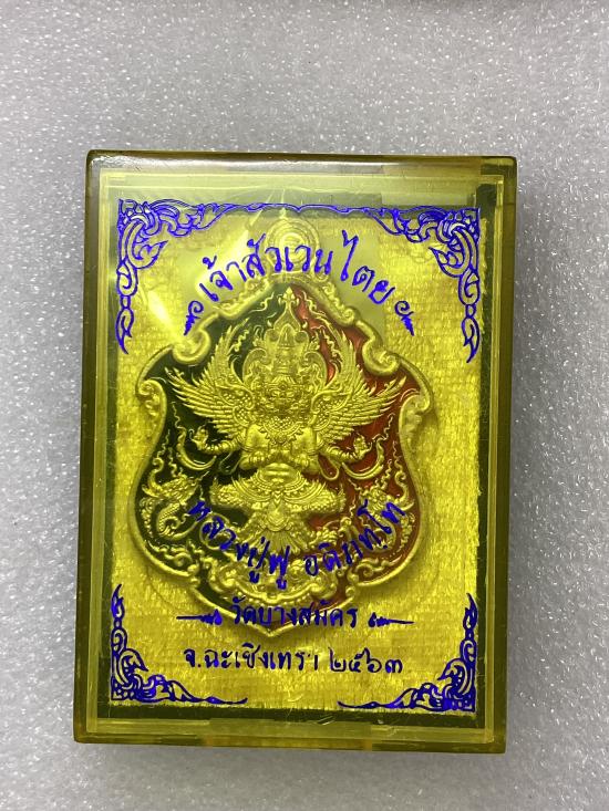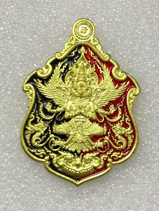 เหรียญพญาครุฑ รุ่น เจ้าสัวเวนไตย หลวงปู่ฟู อติภทฺโท วัดบางสมัคร จ.ฉะเชิงเทรา เนื้อทองทิพย์ ลงยาสีดำ -แดง กล่องเดิม |