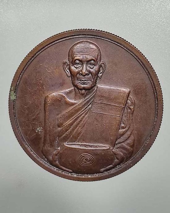 รายละเอียด เหรียญบาตรน้ำมนต์รุ่นแรกหลวงพ่อทรง วัดศาลาดิน ปี 2549 จังหวัดอ่างทอง รุ่นนะทรงแผ่นดิน เนื้อทองแดง พิเศษมีจาร