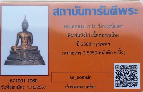 พระพุทธรูป ภปร.พิมพ์หนังไก่ 2508 หมายเลข 3 5359 หน้าตัก 5 นิ้ว