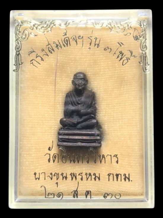 พระหล่อรูปเหมือน กริ่งสมเด็จพระพุฒาจารย์โต พรหมรังสี รุ่น 3 โพธิ์ เนื้อทองแดงรมดำ ปี 2530 วัดอินทรวิหาร จ.กรุงเทพฯ พร้อมกล่องเดิม |