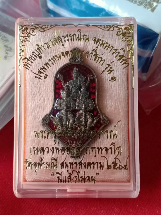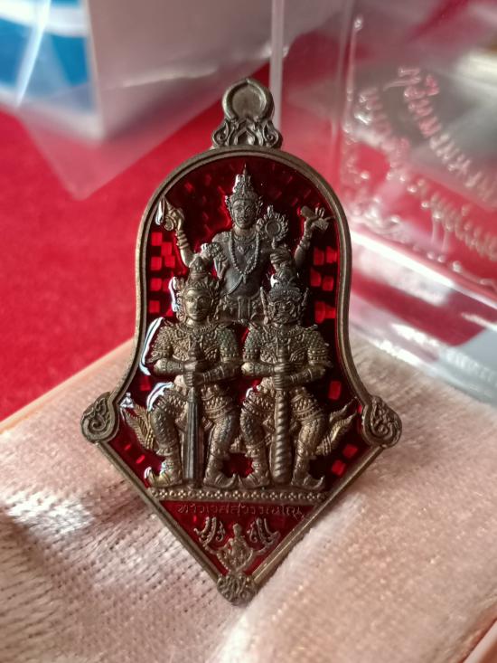 เหรียญท้าวเวสสุวรรณ จำปี3เทพ พิมพ์จำปีใหญ่ (เนื้อนวะ ลงยาแดง) รุ่นมีแล้วไม่จน หลวงพ่ออิฏฐ์ วัดจุฬามณี