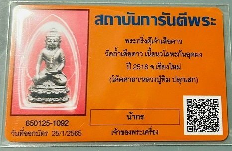 พระกริ่งตุ๊เจ้าเสือดาวตอกโค้ดศาลา ก้นอุดผงพรายกุมาร หลวงปู่ทิม วัดละหารไร่ปลุกเสกปี 2518 ตอกโค้ดศาลา เนื้อนวโลหะกลับดำพร้อมบัตรเวปถ้าไม่มีพระกริ่งชินบัญชรซึ่งหายากเหมือนงมเข็มในมหาสมุทรก็ใช้พระกริ่งตุ๊เจ้าเสือดาวชุดที่หลวงปู่ทิม ปลุกเสกก็คงไม่หนีกัน หลวงปู่ทิมท่านปลุกเสกครอบจักรวาล