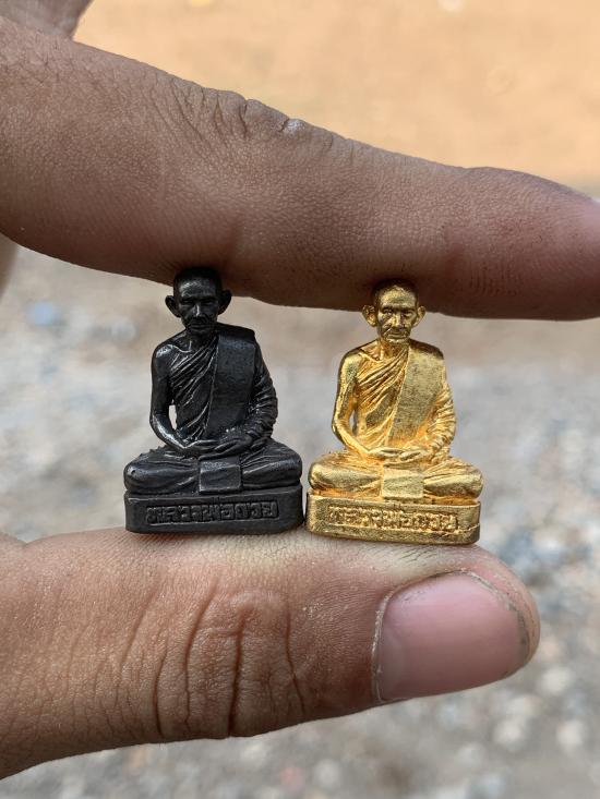 เคาะเดียวเเพ็คคู่ รูปหล่อหลวงพ่อกวย ปี60 ผิวรมดำ+กระไหล่ทอง สวยเดิมพร้อมกล่อง