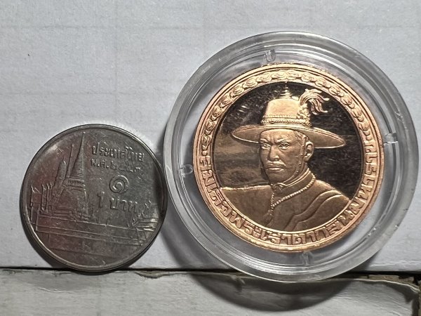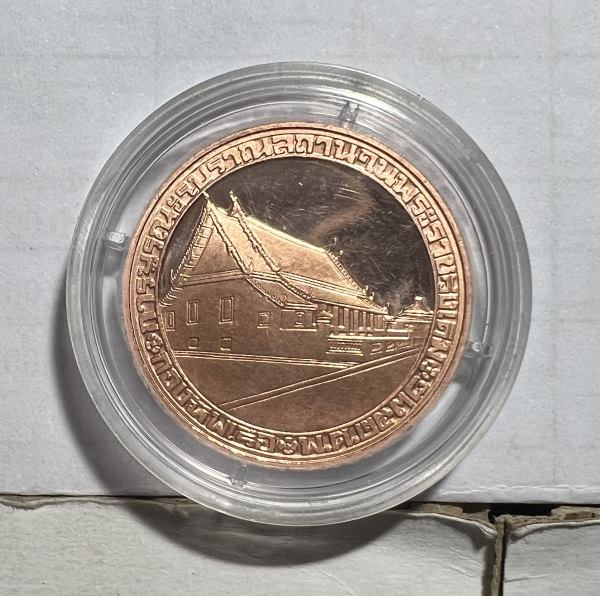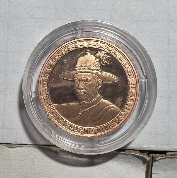 เหรียญสมเด็จพระเจ้าตากสินมหาราช ที่ระลึกโครงการบูรณะโบราณสถานในบริเวณพระราชวังเดิม ปี 2538 ครับ |