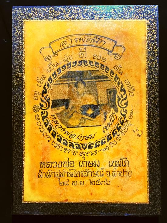ชื่อพระเครื่อง ผ้ายันต์สารพัดนึก หลวงพ่อเกษม ปี 2536 พร้อมกรอบเดิมๆ