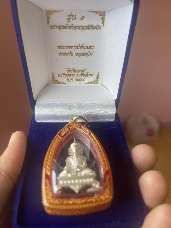 พระพุทธอิทธิคุณบุญนิมิต เนื้อเงินเลข82 เลี่ยมเลเซอร์ สวยๆสภาพ100%