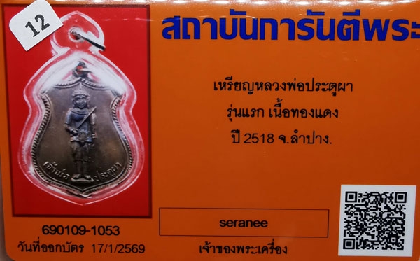 เหรียญเจ้าพ่อประตูผา รุ่นแรก เนื้อทองแดง ห่วงเดิม ปี2518 จ.ลำปาง(หลวงพ่อเกษม ปลุกเสก) + บัตร G-pra สภาพเดิมค่ะ |