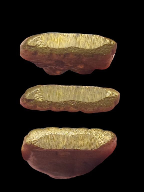 พระหล่อ เนื้อทองเหลือง ไม่ทราบที่ ขนาดกว้าง1.5ซม สูง2.8ซม. |