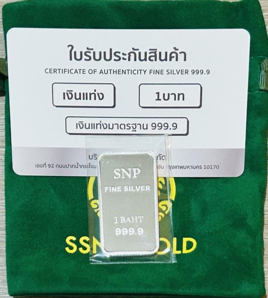 เงินแท่ง 1 บาท 99.99% พร้อมบัตรรับประกันจากร้านทองและถุงผ้าเขียว