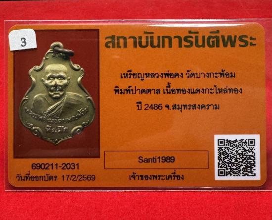 เหรียญปาดตาล หลวงพ่อคง วัดบางกะพ้อม ปีที่สร้าง: จัดสร้างขึ้นเมื่อปี พ.ศ. 2486 จังหวัดสมุทรสงคราม