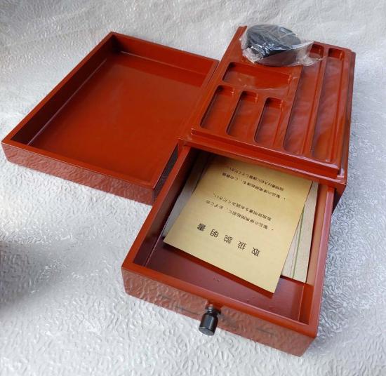 กล่องไม้เก็บตราประทับ งานแลคเกอร์สไตล์เนโกโระ (Negoro-nuri seal case) ซึ่งเป็นของสะสมแบบดั้งเดิมของญี่ปุ่น 1ลิ้นชัก กล่องใหม่เก่าเก็บ