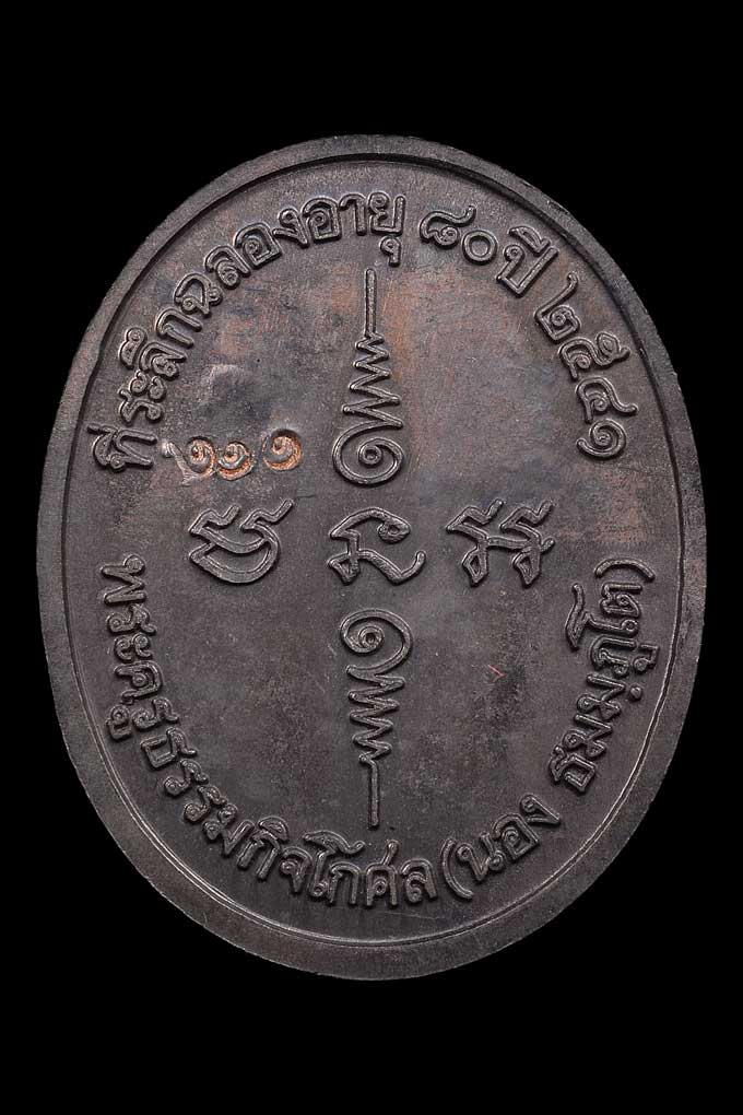 -เหรียญอาจารย์นอง ฉลองอายุ 80 ปี เนื้อนวะโลหะ หมายเลข 119 วัดทรายขาว ปี 2541