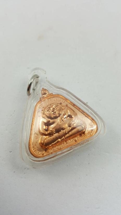 เหรียญจอบซูโม่ เนื้อทองแดง ผิวไฟพร้อมเลี่ยมกันน้ำ ปีพ.ศ.2555 หลวงปู่บัวเกตุปทุมสิโร