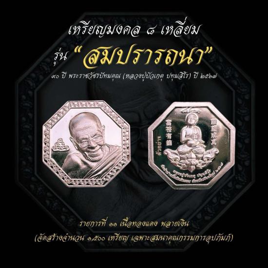 เหรียญมงคล90ปี หลวงปู่บัวเกตุ 8 เหลี่ยม รุ่นสมปรารถนา เนื้อ ทองแดงพายเงินพร้อมกล่องเดิมๆ