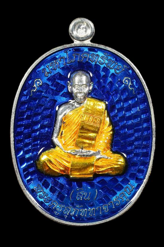 เหรียญมหาโภคทรัพย์ หลวงพ่อสิน วัดละหารใหญ่ ปี 59 เนื้อเงินลงยา # 69 พร้อมกล่องเดิมครับ