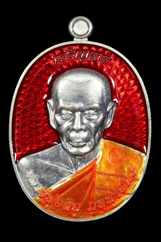 เหรียญเจริญพรบน หลวงพ่อสิน วัดละหารใหญ่ ปี 60 เนื้อเงินลงยาสีแดง # 23 พร้อมกล่องเดิมครับ