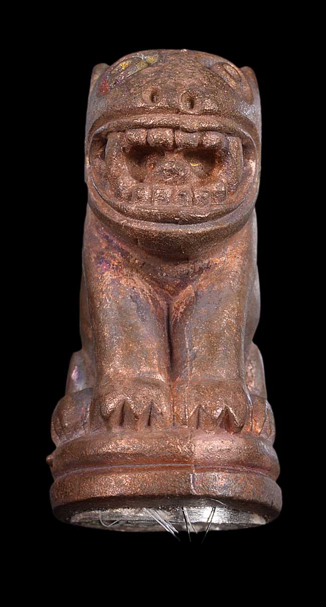 -เสือมหาอำนาจ รุ่นแรก เนื้อนวะโลหะ ใต้ฐานเงิน มีจาร ยันต์ด้านหลัง แก้ม(ซ้าย-ขวา) เข่า (ซ้าย-ขวา) ตอกโค๊ตที่หัว และตอกโค๊ตที่ใต้ฐาน หมายเลข 30 อาจารย์ทอง วัดสำเภาเชย ปี 2547 จ.ปัตตานี