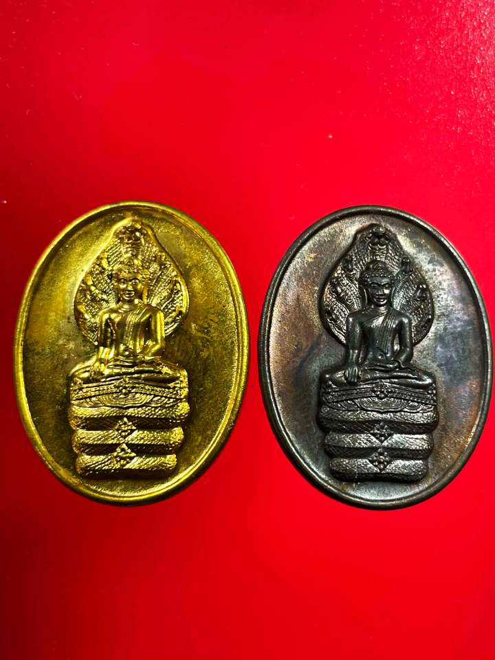 เหรียญนาคปรก สธ ปี 34 วันพระราชสมภพครบ 3 รอบ สมเด็จพระเทพฯ เนื้อกะไหล่ทอง 6 องค์ + เนื้อนวะ 1 องค์ พร้อมกล่องเดิม