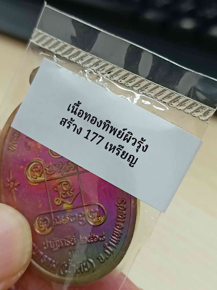 วัดใจ 100 เหรียญปาฏิหาริย์ หลวงพ่อโชคชัย วัดเชตวนาราม(น้ำดิบ) จ.กำแพงเพชร 2568 ทองทิพย์ผิวรุ้ง หมายเลข 52 กล่องเดิม