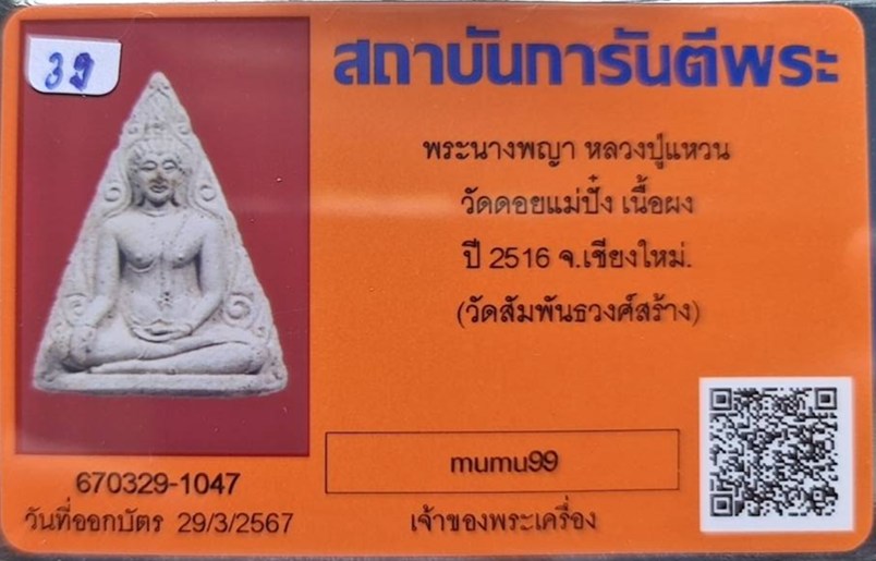 @## พระนางพญา.. ลป.แหวน วัดดอยแม่ปั๋ง จ.เชียงใหม่ (พิธีปลุกเสกใหญ่ใหญ่ วัดสัมพันธวงศ์ กทม.จัดสร้าง ) ปี2516 เนื้อผง พร้อมบัตรรับรอง สภาพสวยมาก รับประกันความแท้ตลอดชีพ พิธีปลุกเสกในวาระแรก ปี 2516 -วัต