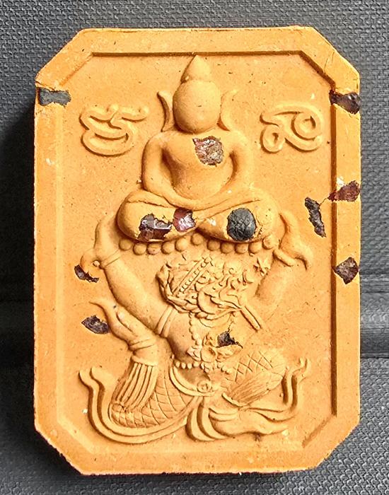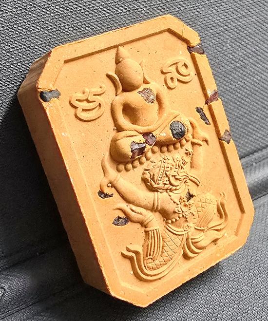เนื้อพุทธคุณ ส้มเกษร ฝังพลอยเสก พิมพ์ประทับบนหนุมาน หลังยันต์โสฬสหรือยันต์น้ำเต้า