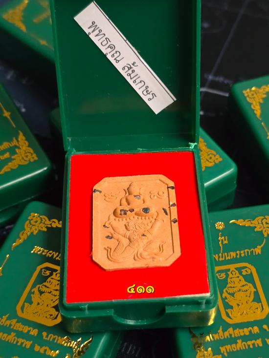 พระผงมนต์พระกาฬ หลวงปู่มหาศิลา สิริจันโท ออกวัดโพธิ์ศรีสะอาด งานกฐิน ปี๒๕๖๗ (หลวงปู่มหาศิลาปลุกเสกในวาระแรก ปี๒๕๖๗) เนื้อพุทธคุณ ส้มเกษร พิมพ์ประทับบนหนุมาน หลังยันต์โสฬสหรือยันต์น้ำเต้า หมายเลข ๔๑๑
