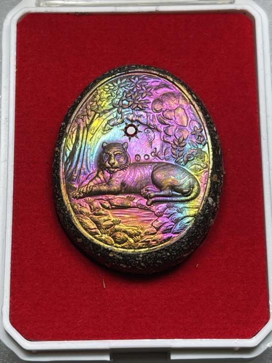 เบี้ยแก้พญาเสือนอนกิน องค์ครู รุ่นแรก พระอาจารย์ประสูติ วัดในเตา เนื้อทองอัคคีผิวรุ้ง