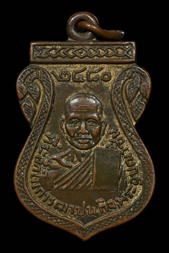 เหรียญพระอุปัชฌาย์ชื่น วัดปากบาง เนื้อทองแดงกะไหล่ทอง ปี2480 จ.กาญจนบุรี |