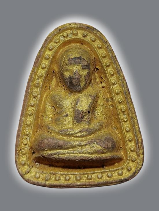 A7442.พระเนื้อผงหลวงพ่อเงินทาทอง หลังจารย์ยันต์ ไม่ทราบที่ เคาะเดียวเเดง