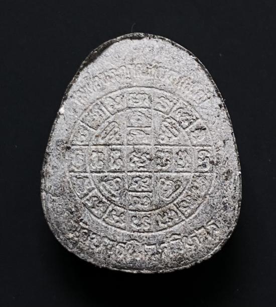 พระปิดตายันต์ดวงเล็ก ปี2523 สมเด็จพระญาณสังวร (เจริญ) วัดบวรนิเวศ_(เนื้อผงใบลานแช่น้ำมนต์บาง)_