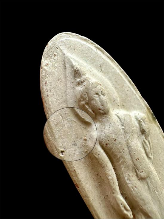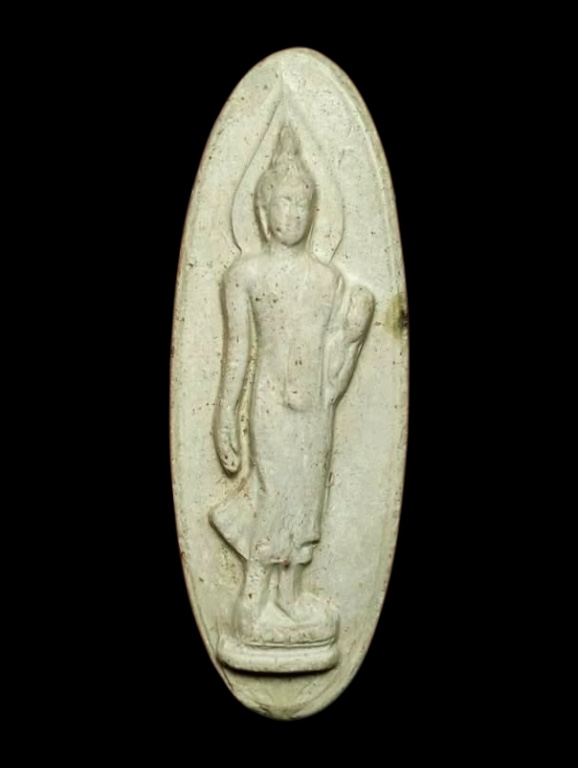 พระพุทธ25ศตวรรษปี2500 เนื้อดินสีขาวแร่ดอกมะขามกระจายทั่ว พิมพ์พิเศษ 2เดือยหน้าบางๆ2เดือยหลัง+ปาฏิหารณ์ มีบิ่นนิดเดียว พิธีใหญ่ หายากครับ