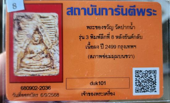 พระผงของขวัญ วัดปากน้ำ รุ่น3 พิมพ์ลึกที่ 8 หลังยันต์กลับ พร้อมบัตร G