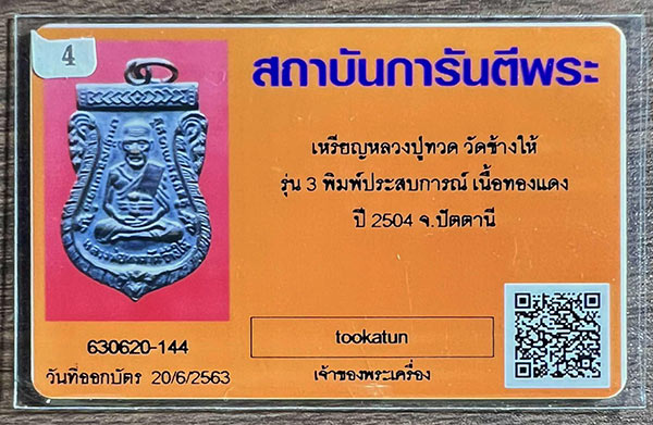 เหรียญเสมารุ่น3 บล็อกประสบการณ์ ปี04 เนื้อทองแดง พร้อมบัตรรับรองพระแท้